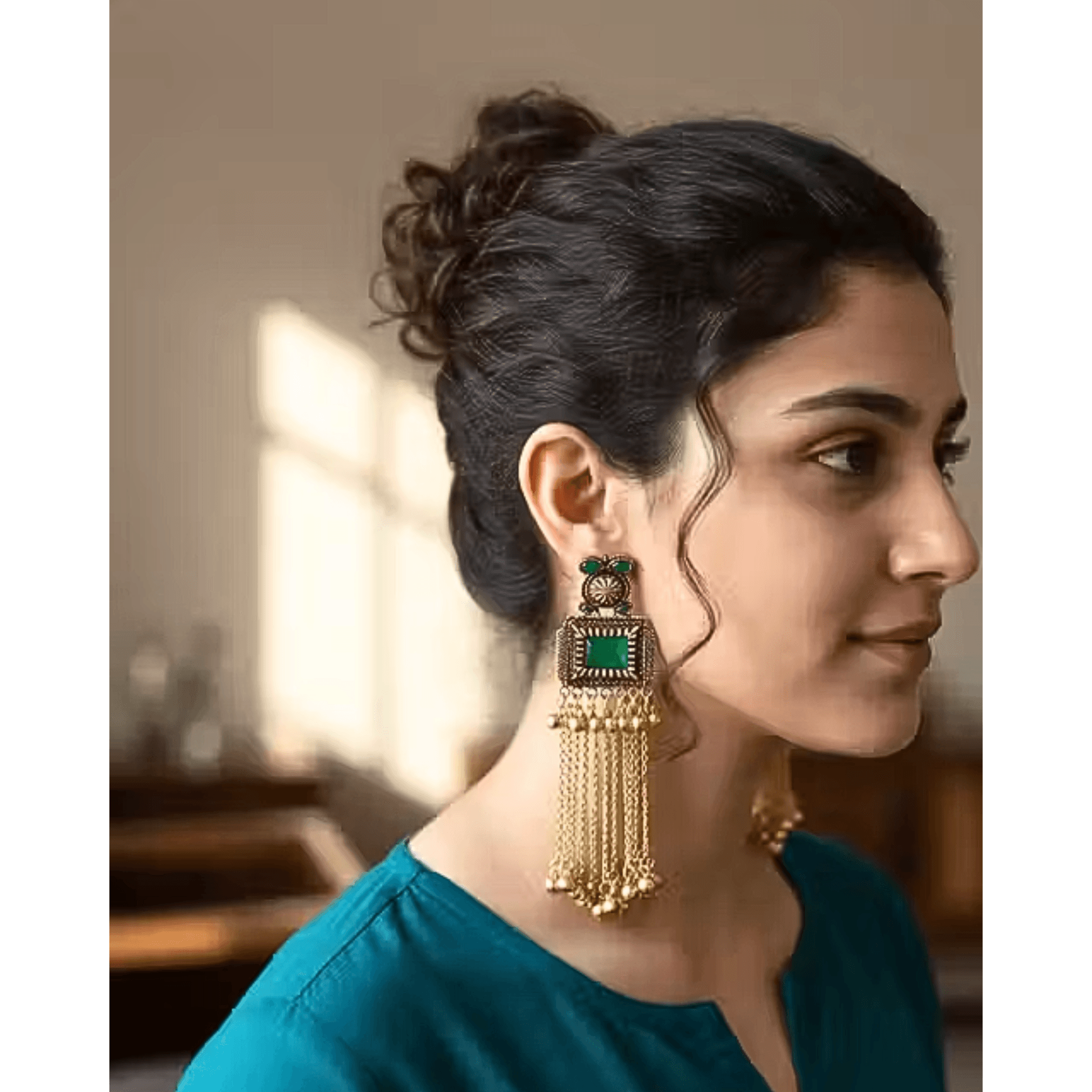 Antique Gold Plated Long Dangler Earrings for Women & Girls